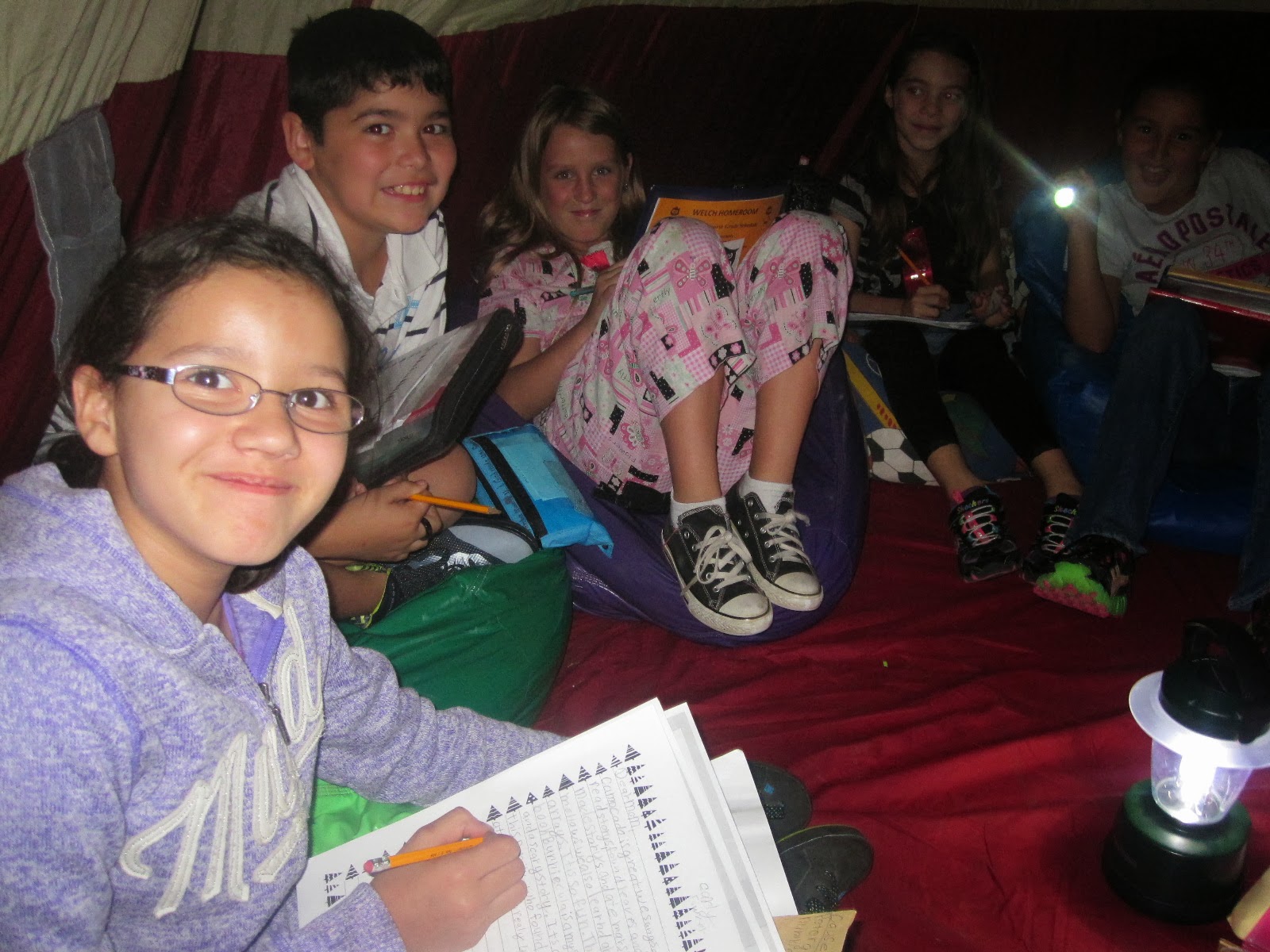 For our first day of camp we celebrated National Writing Day in style! Students practiced their editing skills by making compound and complex sentences. Students learned about the importance of conjunctions, how to use them and when a comma needs to be added to the conjunction. Also as a class we learned the song, "Camp Write-Along" that was to the tune of YMCA. HOWEVER, the most important thing about today is that the students had glow sticks attached to their pencils and got to do their practice with the lights off using just the light from the glow sticks and their flashlights. :) We even had a campfire of our own to listen to and watch (via video on our smart board). It was a fun day and great way to start off the week!